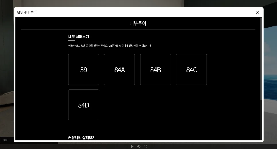 다양한 내부 타입별로 어떻게 구성이 되었는지 VR 투어와 함께 영상까지 제공됩니다.