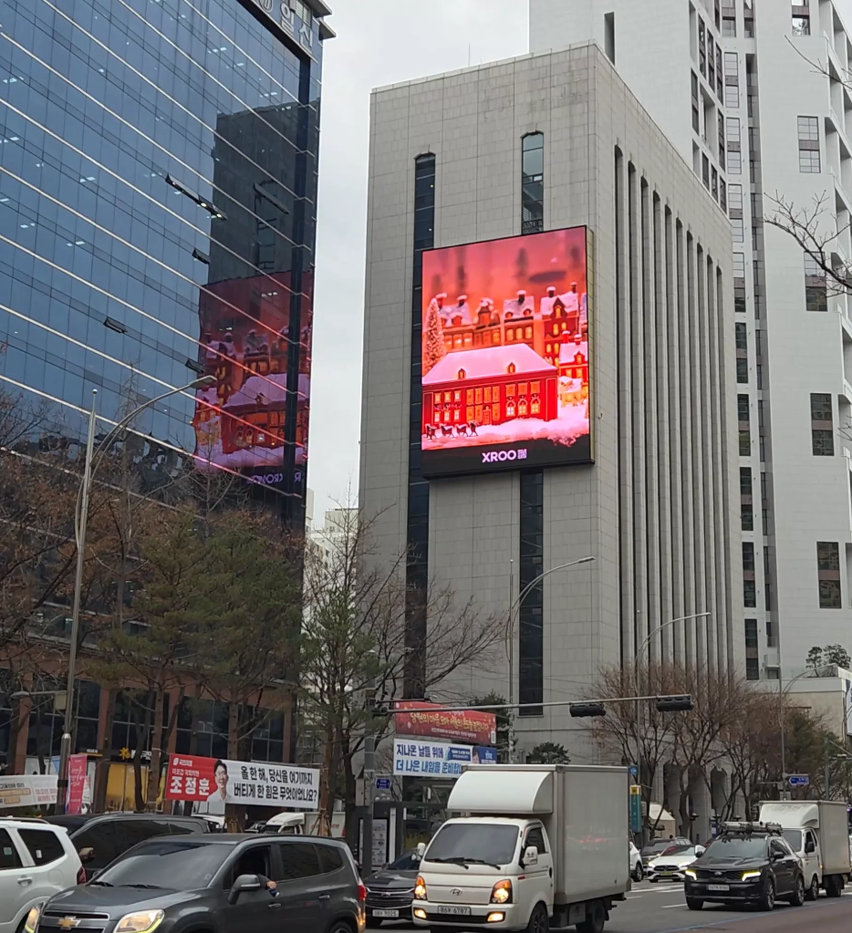 멀리서도 인지되는 강한 시각 임팩트가 필요합니다. 보행자가 지나치면서 0.5초 안에 시선을 끌어야 하기 때문에 정적 이미지나 텍스트 위주 콘텐츠는 효과가 거의 없습니다.