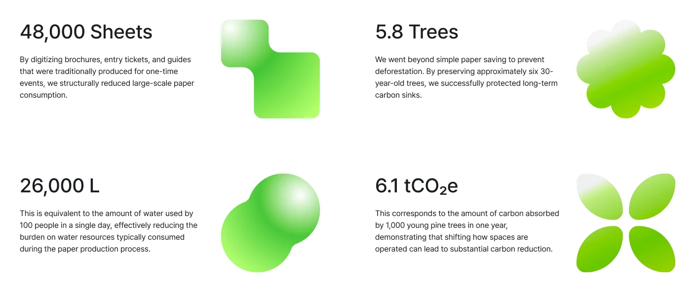Digital Curation Saving 6 Trees: We achieved a 100% digital transition for all brochures and guides. By preventing the consumption of over 48,000 sheets of paper, we preserved approximately 6 trees (based on an average of 1.2 brochures per visitor).