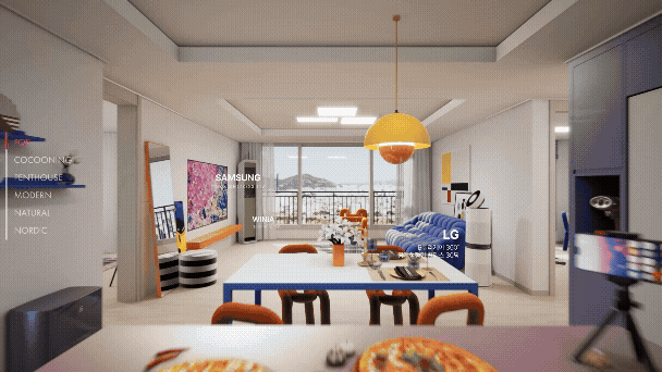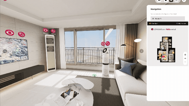 LGハロービジョンのデジタルショールームは、ペントハウスからノルディック・ムードまで、プロがセットした6つの高感度な居住テーマを即座に提供します。顧客は自分の家を描く手間を省き、自分の好みに最も近い空間を選択するだけで済みます。XROOはこれにより顧客の心理的ハードルを下げ、滞在時間を画期的に伸ばしました。