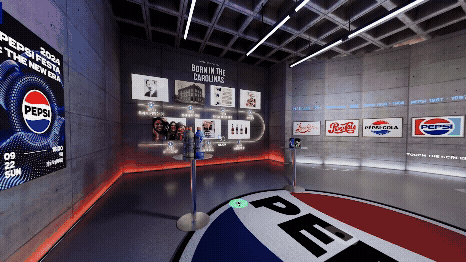 The Heritage Zone: Users walk through a virtual gallery showcasing Pepsi’s logo evolution from 1893 to the present. By turning a flat historical record into a 3D spatial experience, Pepsi encouraged consumers to dive deeper into the brand’s roots, turning passive information into active exploration.